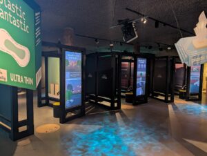 The goal was to minimise plastic waste, which was especially relevant for an exhibition addressing the environmental impact of plastic pollution.