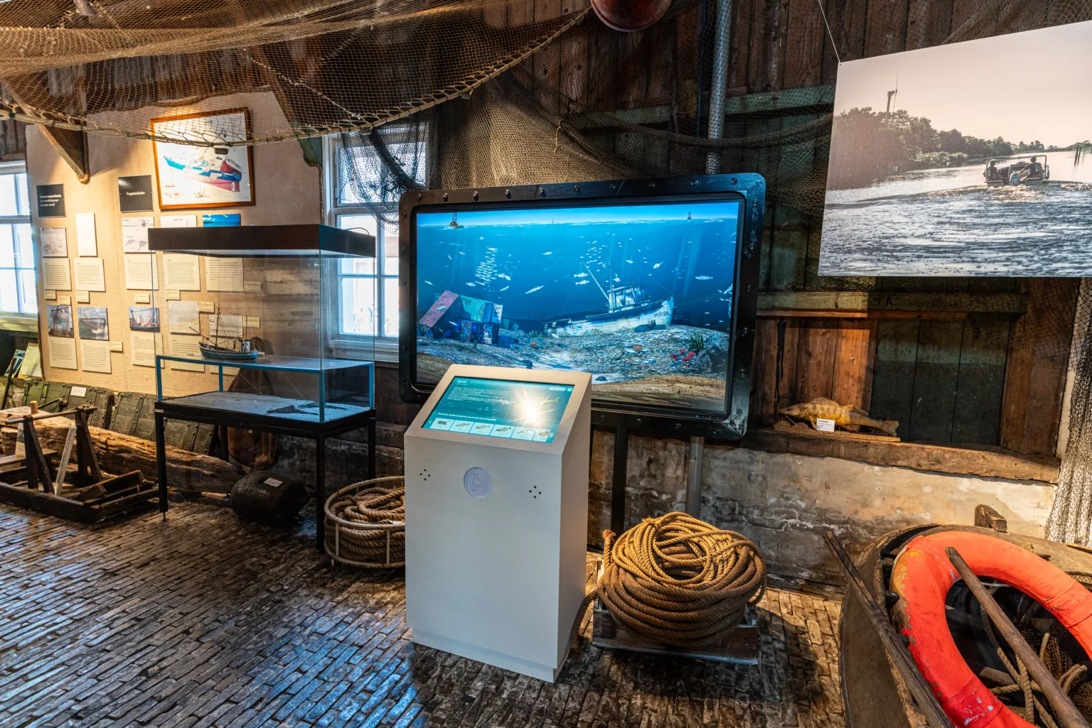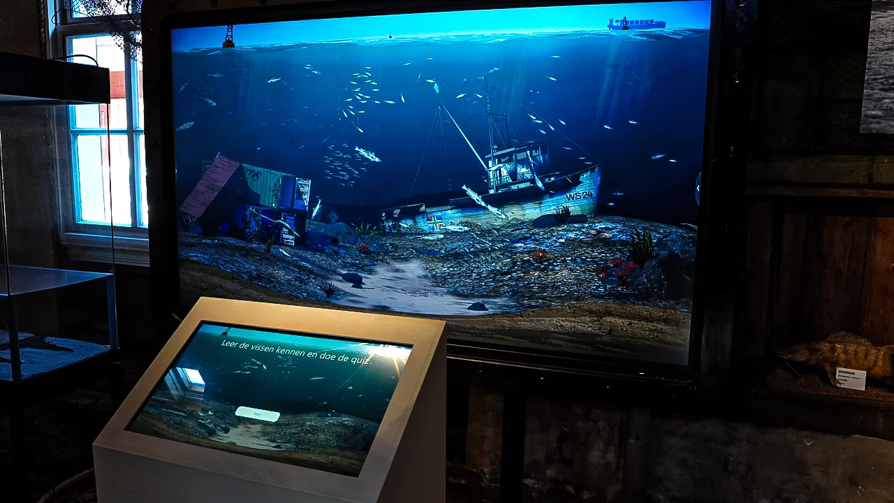 The Fisheries Museum in Zoutkamp was in the process of renewing their exhibition, and we had the honor of redeveloping their “Fish of the North Sea” display. The original exhibition featured a display case, partially filled with sand, showcasing wooden cutouts of fish. The museum wanted to transform this into an educational and interactive experience while maintaining the original aquarium concept.