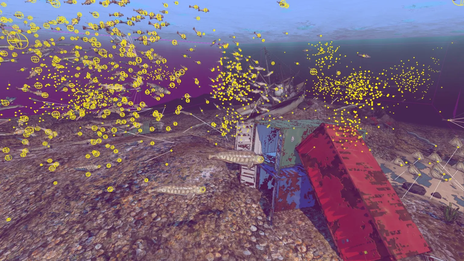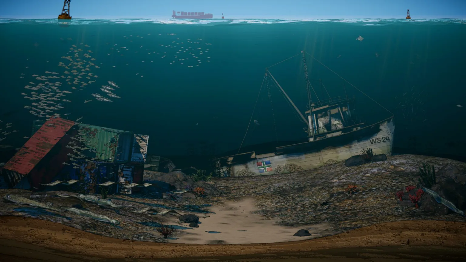 For this project, our 3D artist modeled no fewer than 55 different fish species, ranging from anchovies to wolffish, including the lumpsucker. These fish were brought to life using artificial fish behaviour developed by our developer team.
