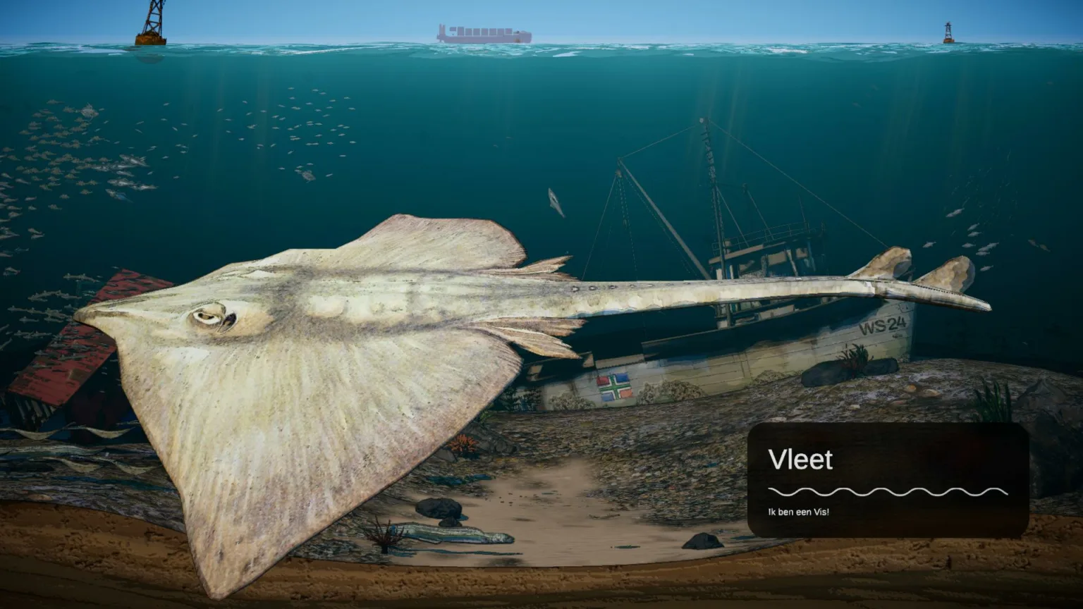 In collaboration with deFine, we designed a digital aquarium where thousands of North Sea fish swim freely. Through an interactive interface, visitors can explore different fish species and participate in a quiz.